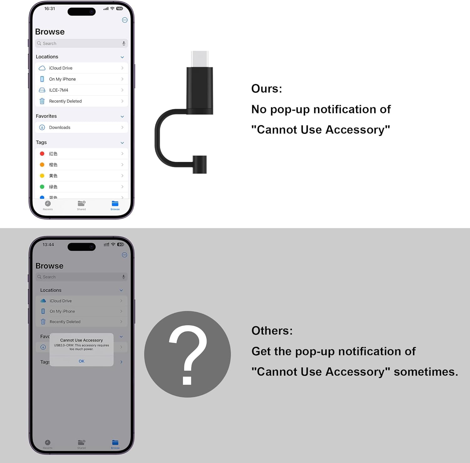 - ⚡ Transferencia rápida de archivos entre tarjetas SD/TF y dispositivos iPhone o iPad.