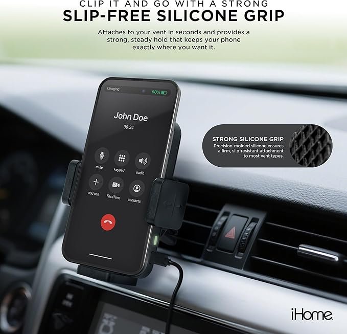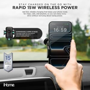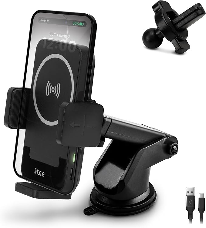 ✨ Mantén tu smartphone seguro y siempre cargado mientras conduces con el Soporte Universal de Carga Inalámbrica iHome para automóvil. Ofrece carga rápida de hasta 15W, compatibilidad con tecnología MagSafe, y múltiples opciones de montaje para mayor comodidad y estabilidad.